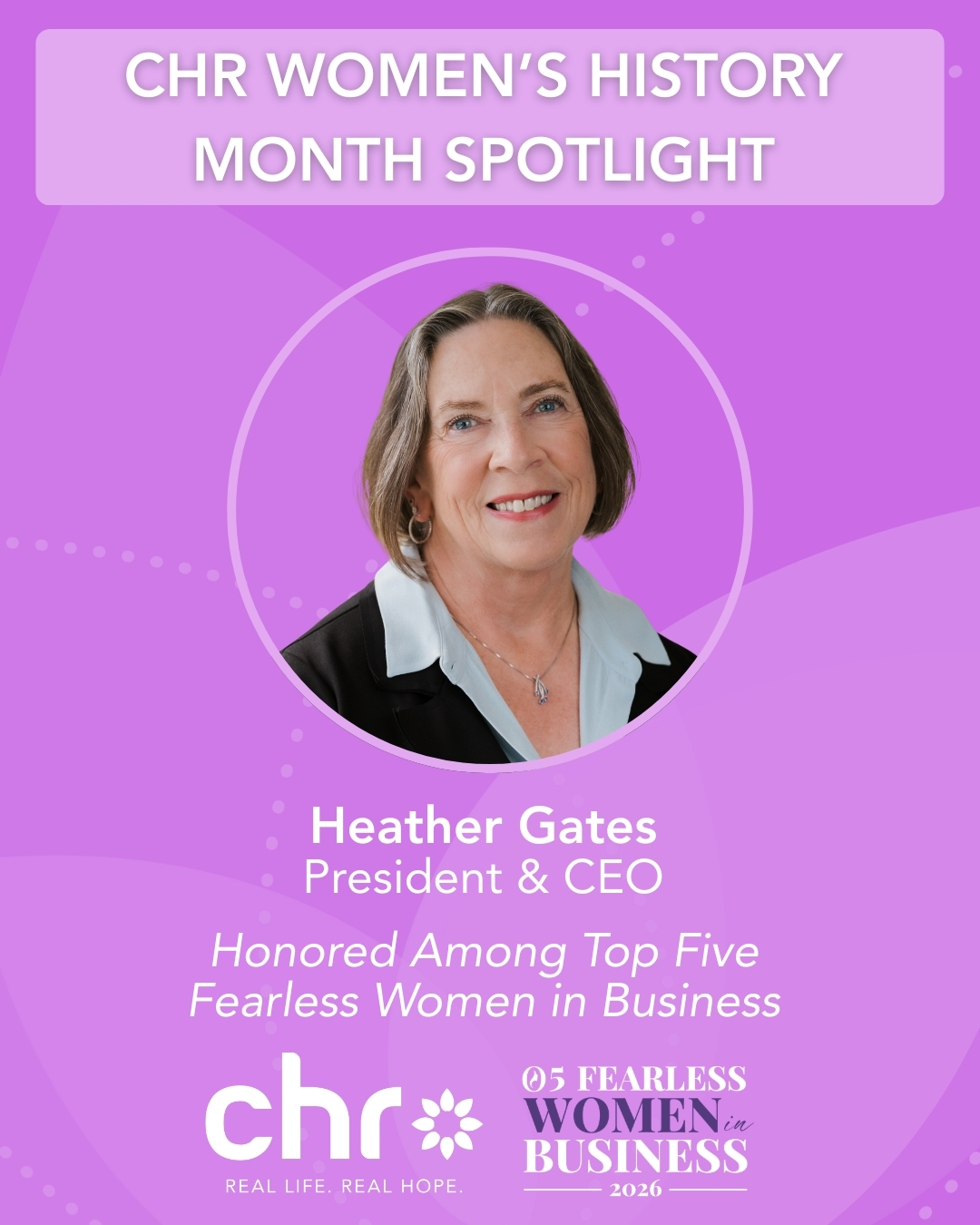 For International Women’s Day, Heather Gates, CHR’s President and CEO, was named one of the top five Fearless Women in Business by Women in Business Elite, a global business media and marketing platform. In this inspiring profile, Gates explains why she became an advocate for individuals with mental health needs, how she’s built a robust system of care for people of all ages, and her vision for the future. Read the full article here.“The core values that guide my business decisions are integrity, compassion, respect for different points of view, and ultimately, making decisions that honor, respect, and help the individuals and families we serve,” she said.